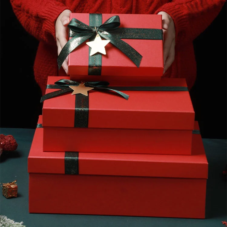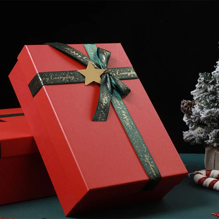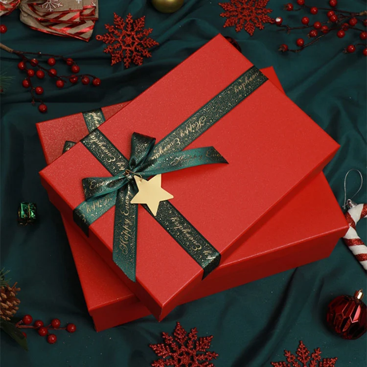 | Produktname | Weihnachts-Geschenkbox mit festem Deckel und Boden, mit Band und Sternanhänger |